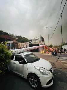 वही कई जगह से लोगों की गाड़ियों का भारी नुकसान होने की सूचना मिल रही है। ऐसी ही एक दुर्घटना में नामदेव चौक जुडियो के बाहर लगी भारी भरकम लोहे की शटरिंग पार्किंग में खड़ी गाड़ियों पर गिरने से शॉपिंग के लिए आए लोगों का बड़ा भारी नुकसान होने की जानकारी मिली है।