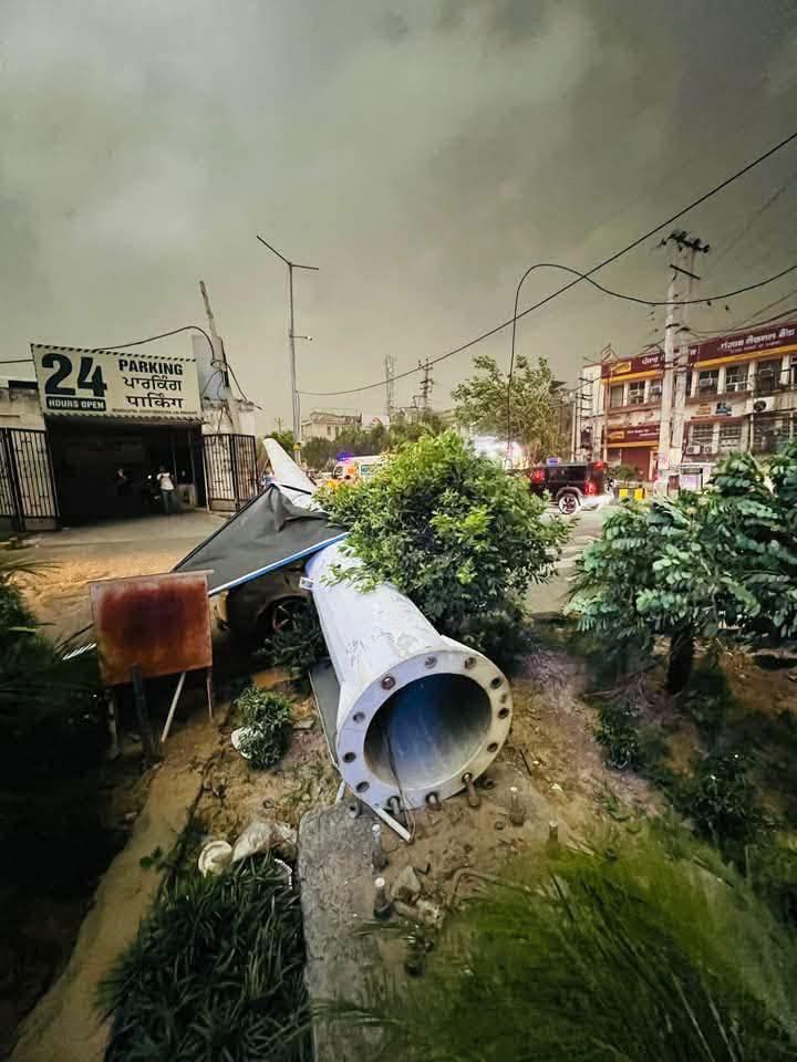 MBD NEWS (सुमेश शर्मा) जालंधर में आज शाम तेज आंधी तूफान के चलते कई जगह पर भारी भरकम पेड़ धराशाई हो गए। वही कंपनी बाग़ श्रीराम चौक में लगा तिरंगे का पोल टूट कर सड़क पर जा रहे राहगीरों पर जा गिरा। जिससे दो लोगों को गंभीर चोटे आई,