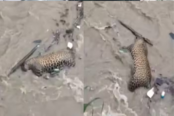 बाढ़ में डूबे तेंदुए का वीडियो वायरल