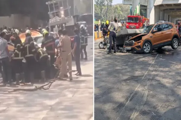 बड़ा हादसा: मुलुंड में भरभराकर गिरा निर्माणाधीन मेट्रो पिलर का हिस्सा, मलबे में दब गई गाड़ियां..
