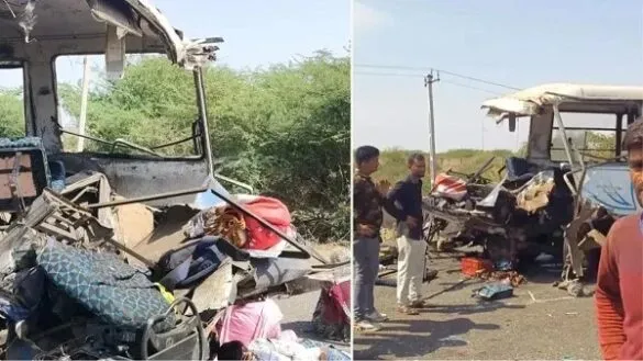बस और ट्रक के बीच हुई भीषण टक्कर में सात लोगों की माैत