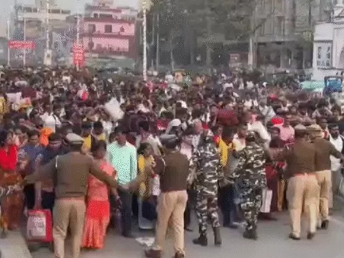 पुलिस मुलाजिमों ने ह्नयूमन चेन बना कर भगदड़ जैसी स्थिति से बचने के लिए अपनाया ये तरीका