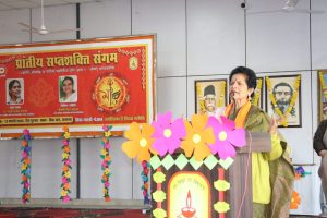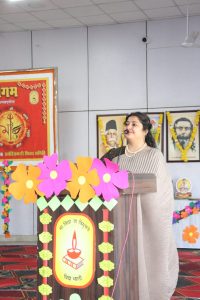 विशिष्ट अतिथि गीता आहूजा ने अपने संबोधन में कहा कि सप्तशक्ति के सातों गुणों को जीवन में आत्मसात करना आवश्यक है। उन्होंने बताया कि स्त्री के जीवन की यात्रा पुत्री से लेकर परमेश्वर तक की होती है — पुत्री, पत्नी, परिवार, प्रदेश, पर्यावरण और पंचमहाभूत तक उसका विस्तार है।