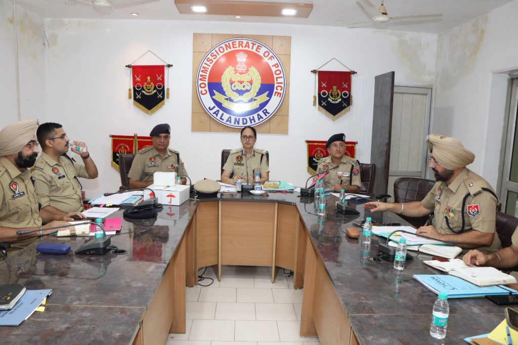 MBD NEWS ਜਲੰਧਰ, 2 ਅਗਸਤ : ਪੁਲਿਸ ਕਮਿਸ਼ਨਰ ਜਲੰਧਰ ਧਨਪ੍ਰੀਤ ਕੌਰ ਵੱਲੋਂ ਅੱਜ ਪੁਲਿਸ ਲਾਈਨਜ਼ ਜਲੰਧਰ ਵਿੱਚ ਇੱਕ ਵਿਸ਼ੇਸ਼ ਮੀਟਿੰਗ ਦੀ ਅਗਵਾਈ ਕੀਤੀ, ਜਿਸਦਾ ਉਦੇਸ਼ ਸ਼ਹਿਰ ਵਿੱਚ ਅਪਰਾਧ ਰੋਕਥਾਮ ਸਬੰਧੀ ਪਹਿਲਕਦਮੀਆਂ ਨੂੰ ਹੋਰ ਮਜ਼ਬੂਤ ਕਰਨਾ ਅਤੇ ਨਾਗਰਿਕਾਂ ਲਈ ਸੁਰੱਖਿਅਤ ਵਾਤਾਵਰਣ ਯਕੀਨੀ ਬਣਾਉਣਾ ਸੀ। ਇਸ ਮੀਟਿੰਗ ਵਿੱਚ ਜੁਆਇੰਟ ਪੁਲਿਸ ਕਮਿਸ਼ਨਰ, ਡੀ.ਸੀ.ਪੀ ਇਨਵੈਸਟੀਗੇਸ਼ਨ, ਏ.ਡੀ.ਸੀ.ਪੀ ਇਨਵੈਸਟੀਗੇਸ਼ਨ, ਏ.ਡੀ.ਸੀ.ਪੀ ਹੈੱਡਕੁਆਰਟਰਜ਼ ਅਤੇ ਸ਼ਹਿਰ ਦੇ ਸਾਰੇ ਏ.ਸੀ.ਪੀਜ਼, ਐਸ.ਐਚ.ਓਜ਼ ਅਤੇ ਯੂਨਿਟ ਇੰਚਾਰਜ ਵੀ ਮੌਜੂਦ ਸਨ।