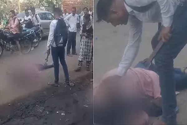 पालघर- महाराष्ट्र के वसई शहर की एक मुख्य सड़क पर एक व्यक्ति को रिंच से महिला को पीटते हुए देखा गया। उस दौरान कुछ लोग इसे देखते रहे और घटना का वीडियो बनाते रहे। पुलिस ने मंगलवार को ये जानकारी दी।